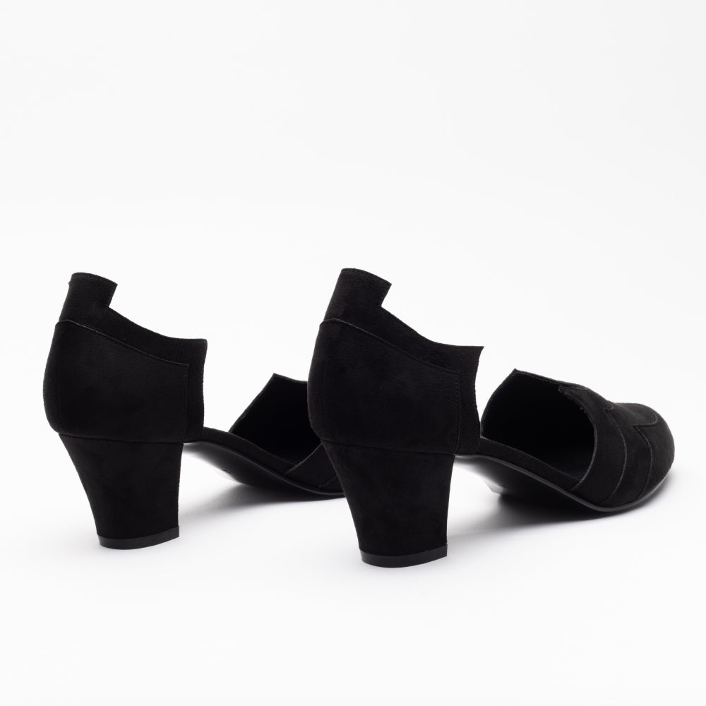 From the mind of Christine McConnell, introducing the Christine Pumps. Inspired by the open-sided pumps that were popular in the 1930s and 1940s, these sleek, sexy pumps from our collaboration collection with Christine McConnell are a veritable vision. Faux suede uppers in angular dimensions are set off by an alluring keyhole on the toe. Built on our perfectly balanced 2.5"/6.35 cm Cuban heel, leather-free Christine Pumps are a surefire way to add intrigue to your ensemble.