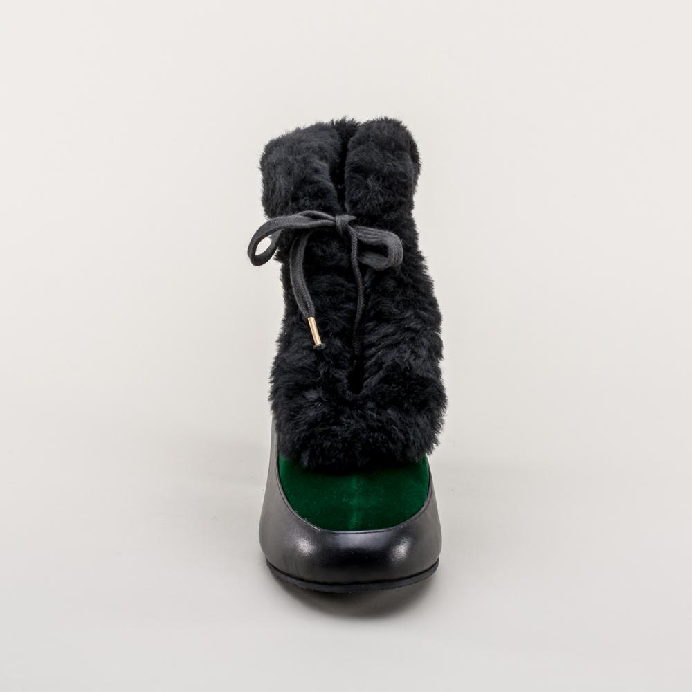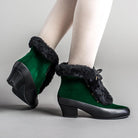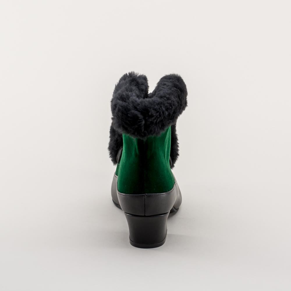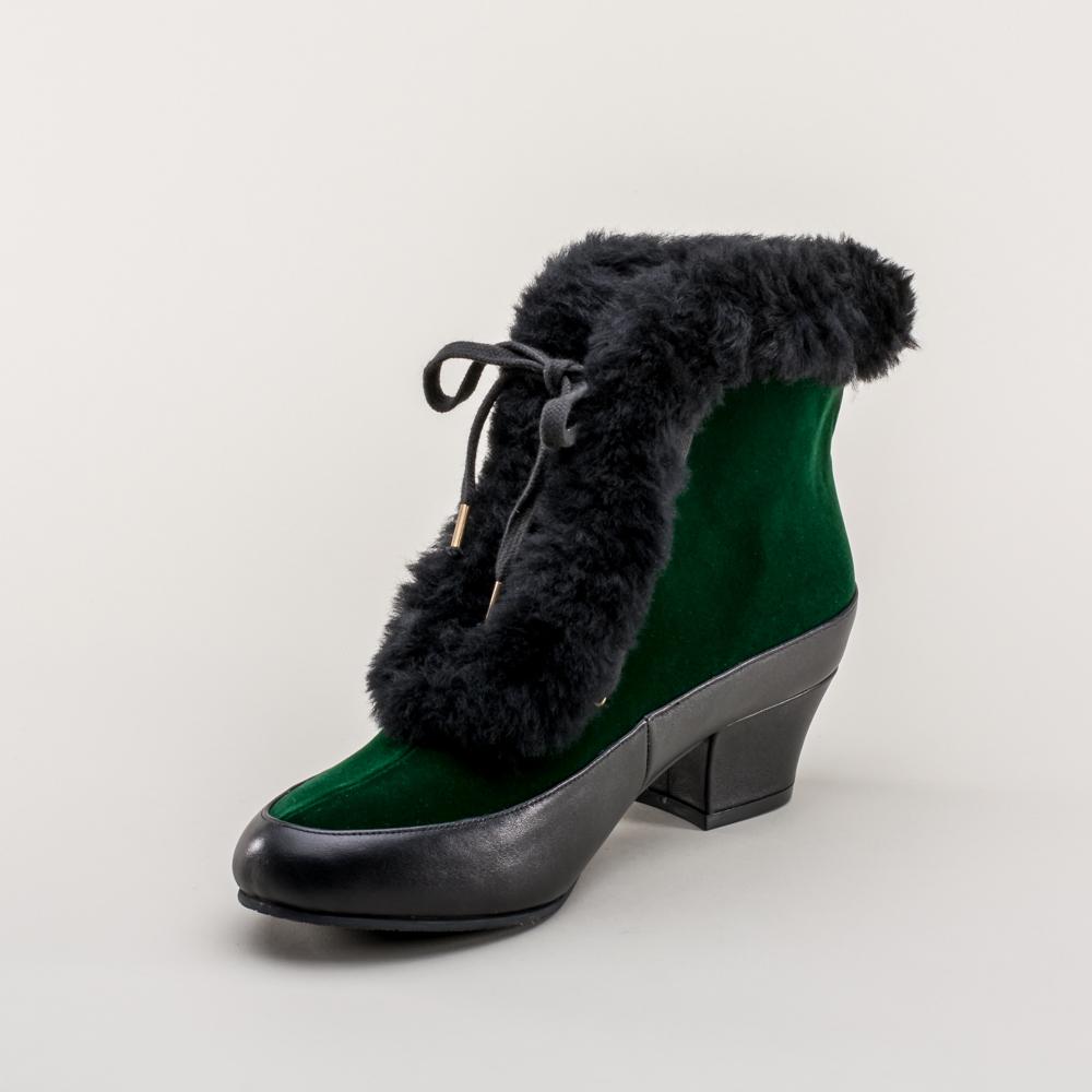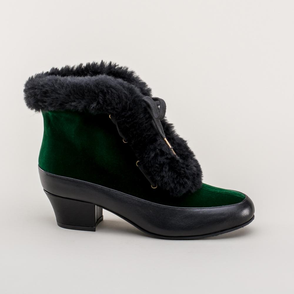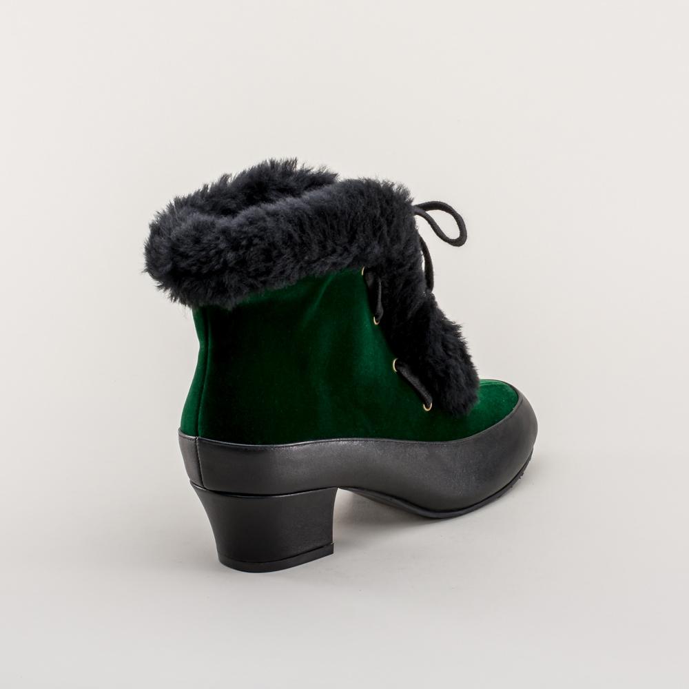 Alpen Retro Winter Booties are just the fashionable footwear you need for your winter vintage outfits. These booties are based on original Montgomery Ward overshoes, also known as galoshes, but are made as regular boots. We've stayed faithful to the velveteen upper and houndstooth lining, opting to use ethically sourced sheepskin trim and leather foxing and heel. These beautiful boots are cozy and practical for winter wear, with rubber soling.
