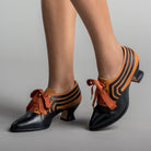 These attractive lace-up shoes have all the style and sass of footwear from c. 1900 through the 1920s and will keep you on your feet and comfortable all day, whether you're attending historical costuming events or walking the streets of New York City. Bernadettes feature our sturdy 2 inch / 5 cm French heel, welted hard-wearing leather soles, pointed toes, and an adjustable lace-up closure, plus all that style with eye-catching contrast stripes on all-leather uppers. Delicious!