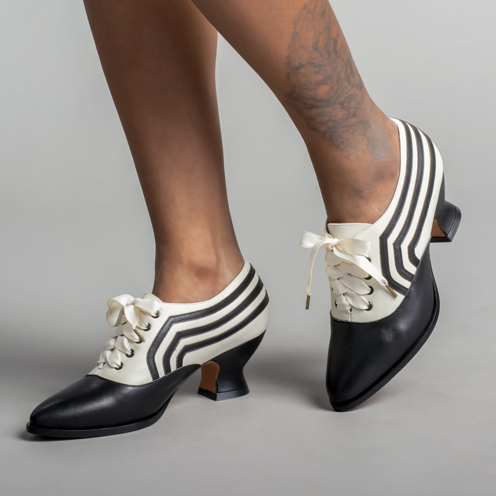 Bernadette Edwardian Oxfords Wide (Ivory/Black)