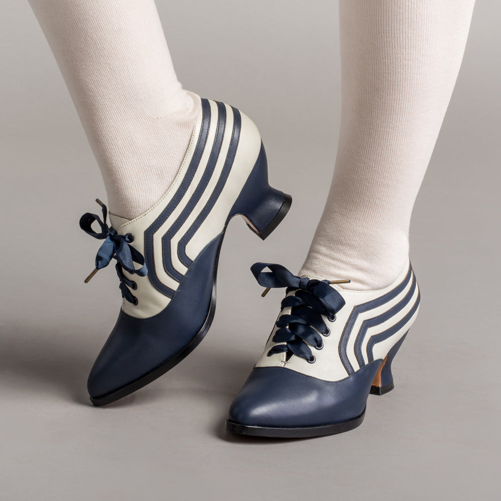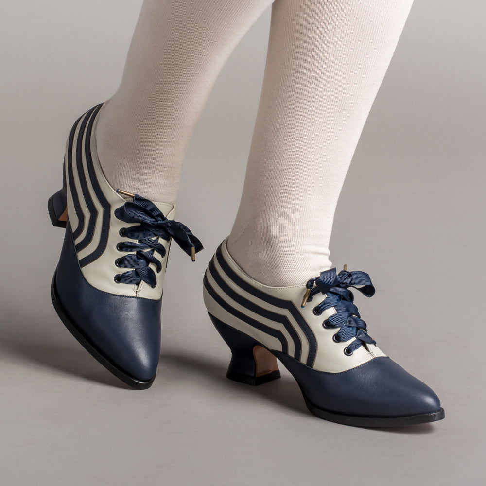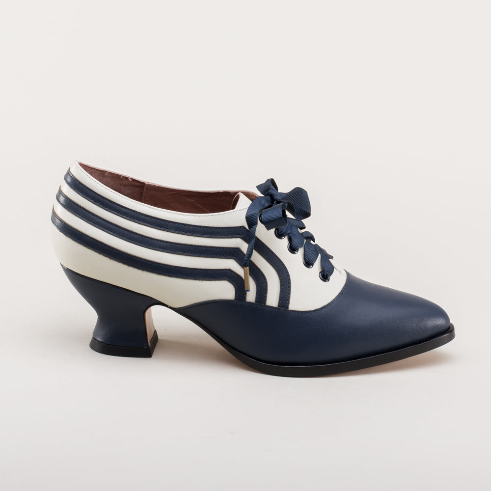 Bernadette Edwardian Oxfords Wide (Navy/Ivory)