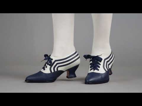 These attractive lace-up shoes have all the style and sass of footwear from c. 1900 through the 1920s and will keep you on your feet and comfortable all day, whether you're attending historical costuming events or walking the streets of New York City. Bernadettes feature our sturdy 2 inch / 5 cm French heel, welted hard-wearing leather soles, pointed toes, and an adjustable lace-up closure, plus all that style with eye-catching contrast stripes on all-leather uppers. Delicious!