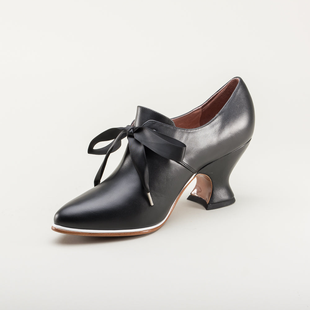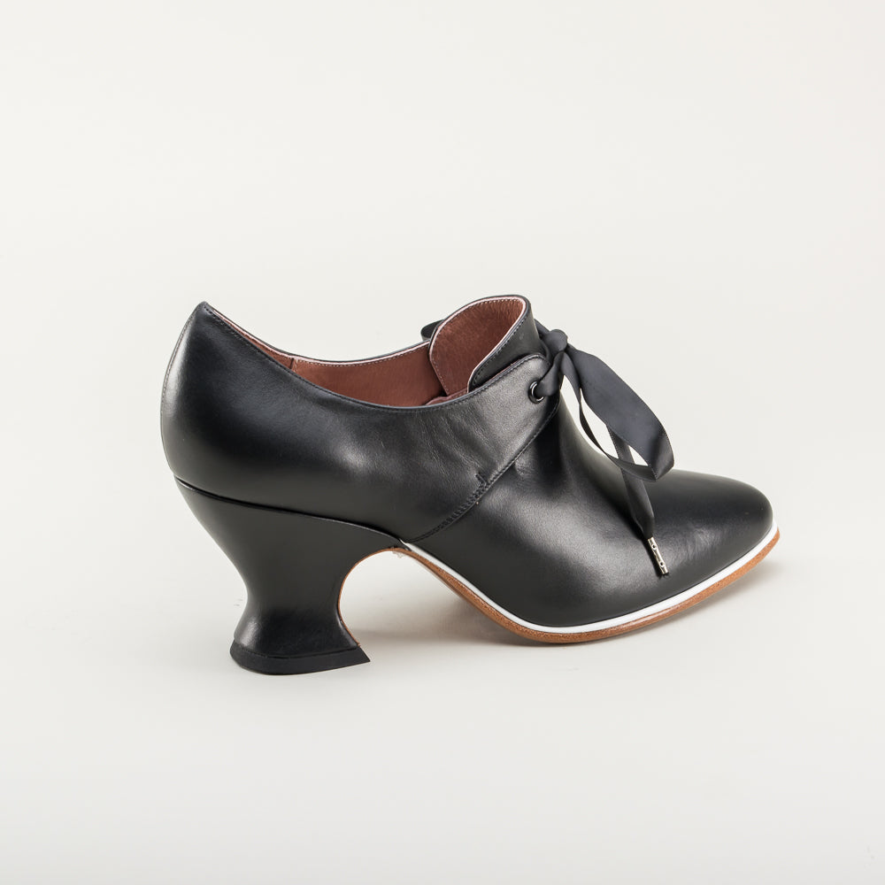 Named for the famous Madame de Pompadour, these heels are closely based on extant early 18th century shoes found in museums, and feature an easy tabbed closure that can be laced with your favorite colored ribbon, cockade, or pom-pom decoration.