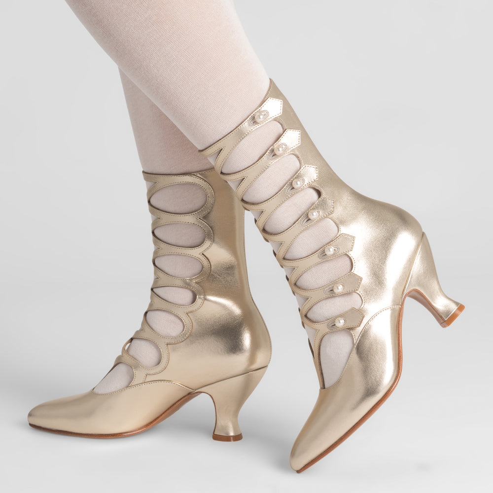 PRE-ORDER Cleo Edwardian Boots Wide (Pale Gold)