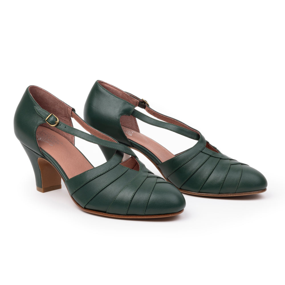 Looking for a shoe that combines the glamour of old Hollywood and all-day wearability? Look no further than Melrose! Based on period originals, these beautiful pumps capture the silhouette and style of the 1930s with sleek straps criss-crossed over the instep, a keyhole opening over the vamp, and gorgeous leather piecing. The straps feature hidden elastic inserts, for additional comfort and ease. Melrose features our classic 2.5"/ 6.35 cm Spanish heel, which is perfectly balanced for comfort. Whether you're donning daywear or evening wear, Melrose fits the occasion.