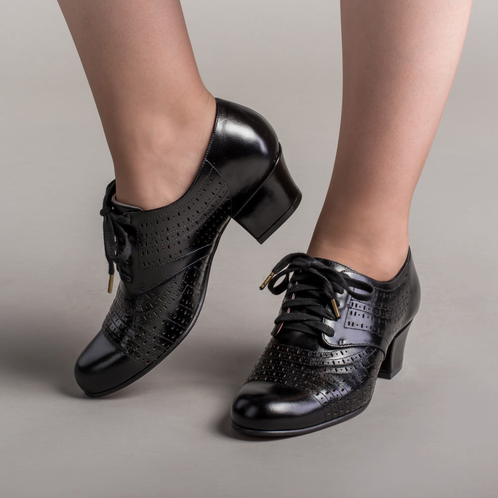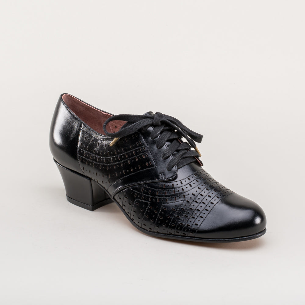 The Bellevue Oxfords are ideal for all attire from the 1920s to the 1960s, especially for CC41 compliant and nurse uniform shoes. Bellevue comes in a high-shine, glacé finish based on originals.