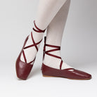 Soft and supple Bronte slippers are beautiful reproductions of 19th century originals. These perfectly period slippers are versatile for late Regency, Romantic era, and early-to-mid-Victorian costumes- and, they will fit perfectly into your contemporary wardrobe! Bronte features a flat, 0.25"/0.6 cm heel, a soft, square toe, and smooth leather uppers with a cotton lining. Interior lacing loops allow for ribbons to be laced through in a variety of attractive arrangements. Like the 19th century original slippers, Bronte has a soft toebox, for a close fit.