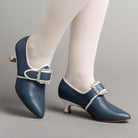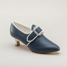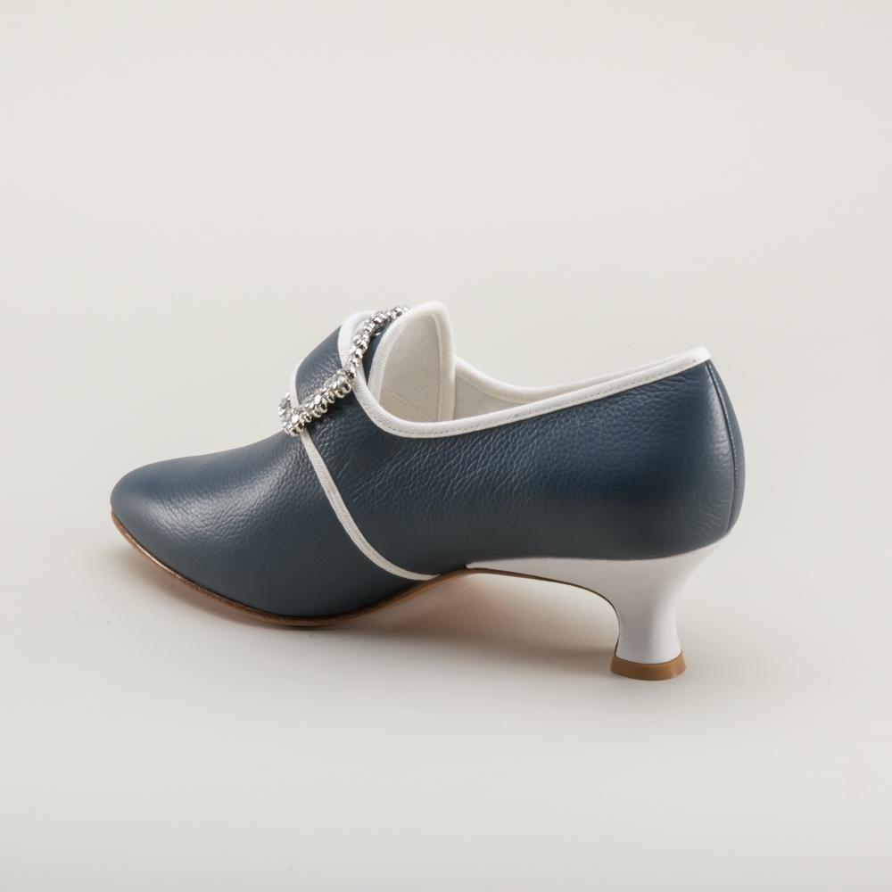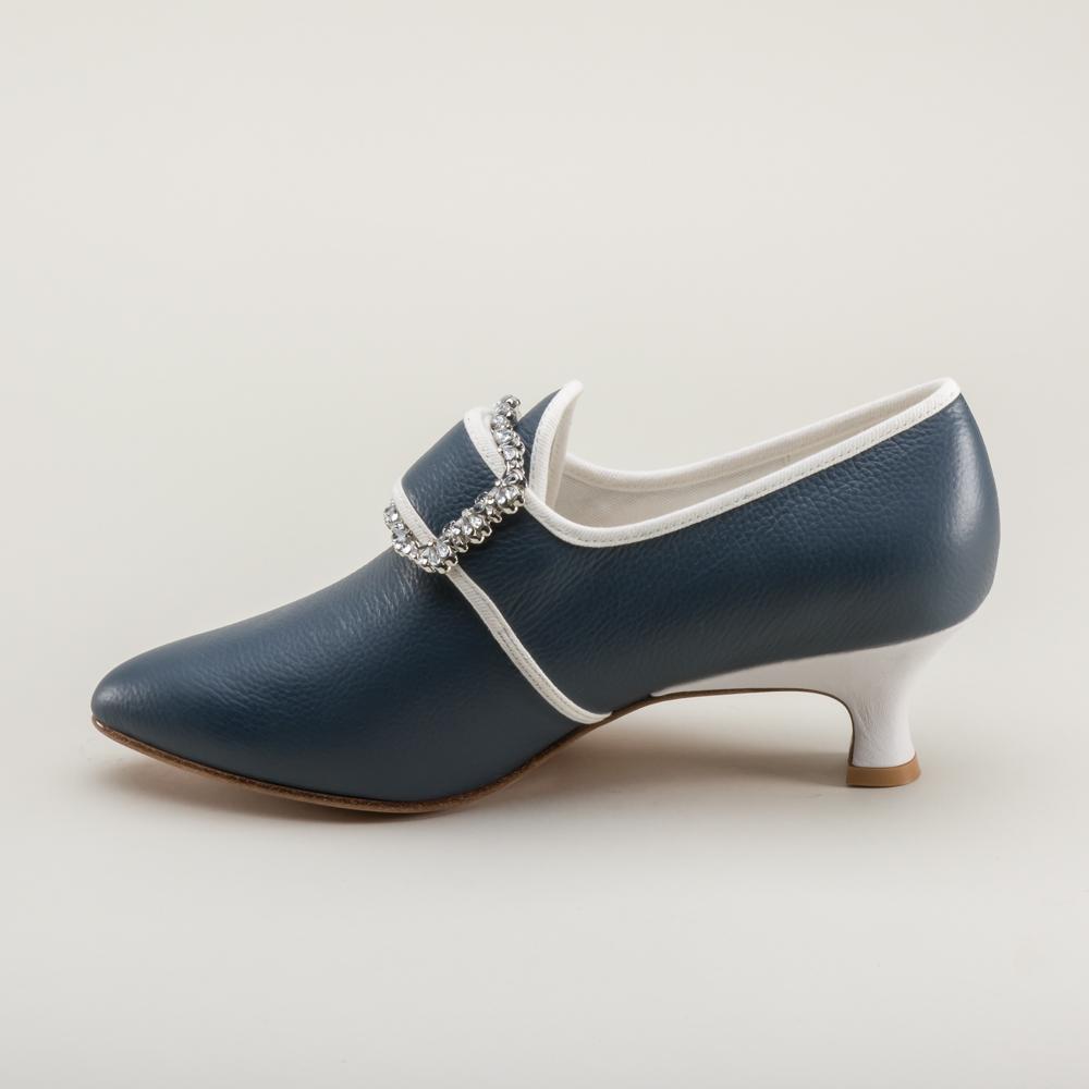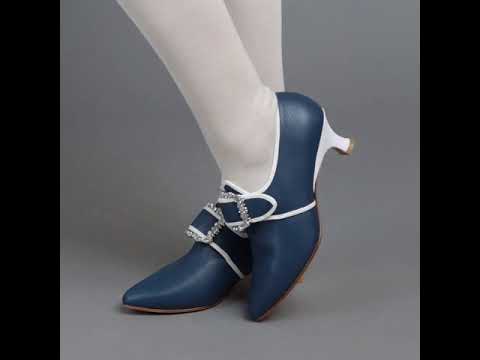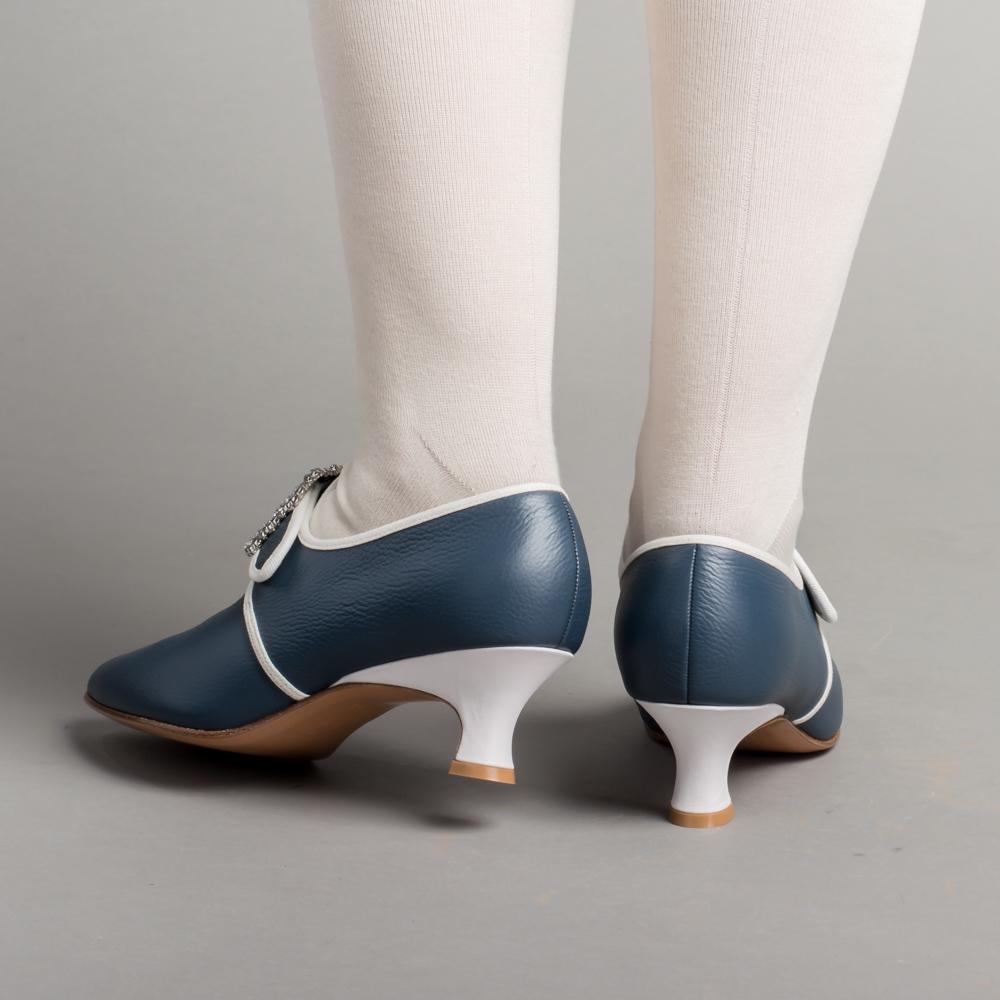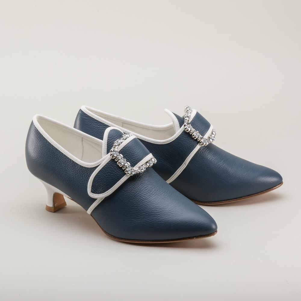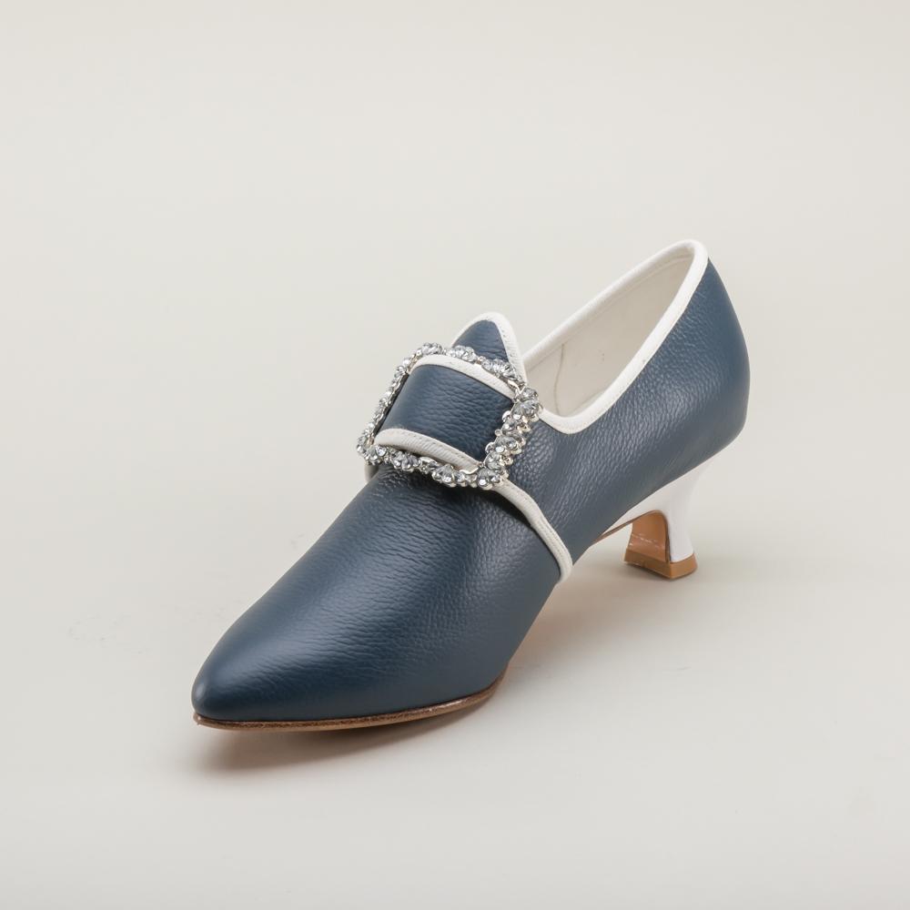 Developed with input from Colonial Williamsburg, Dunmore is accurate for c. 1770 - 1790s, with a 2 inch / 5.08 cm Italian heel crafted after an extant shoe, a tapered toe and soft toe box, and latchet closure.