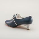 Dunmore 18th century shoes trimmed in white are the ideal materials, silhouette, and heel to pair with your late 18th century gown, from the Revolutionary War to the French Revolution.
