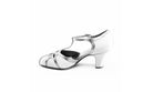 The flappers knew how to have fun with footwear, and the Lilith vintage flapper t-strap sandals pay homage to that spirit. Made in luminous satin paired with metallic leather and rhinestones, the Lilith flapper shoes are closely based on an original celadon green and silver pair in the Shoe Icons museum. These gorgeous shoes are accurate for the 1920s, 1930s, and 1940s, and offer our refined and stable 2.5 in / 6.3 cm Spanish heel paired with open d'orsay sides and an almond toe with cutouts on the vamp.