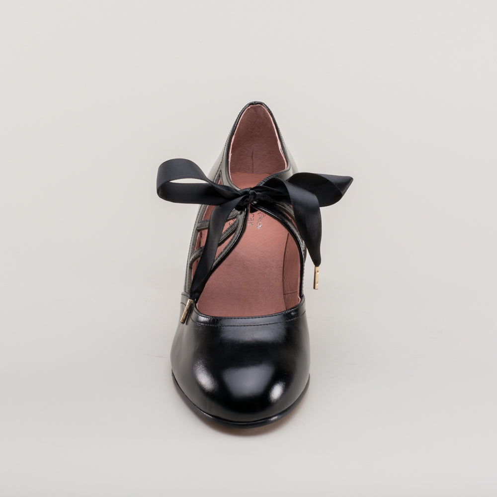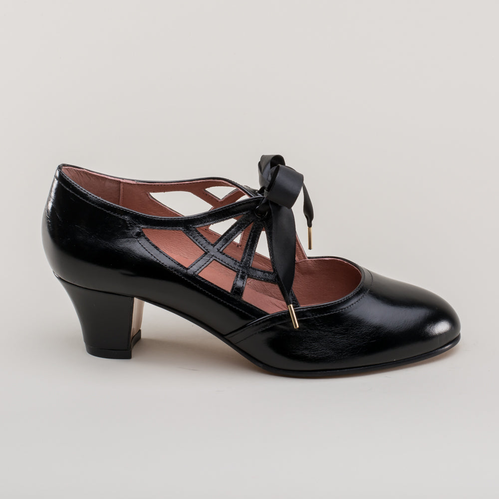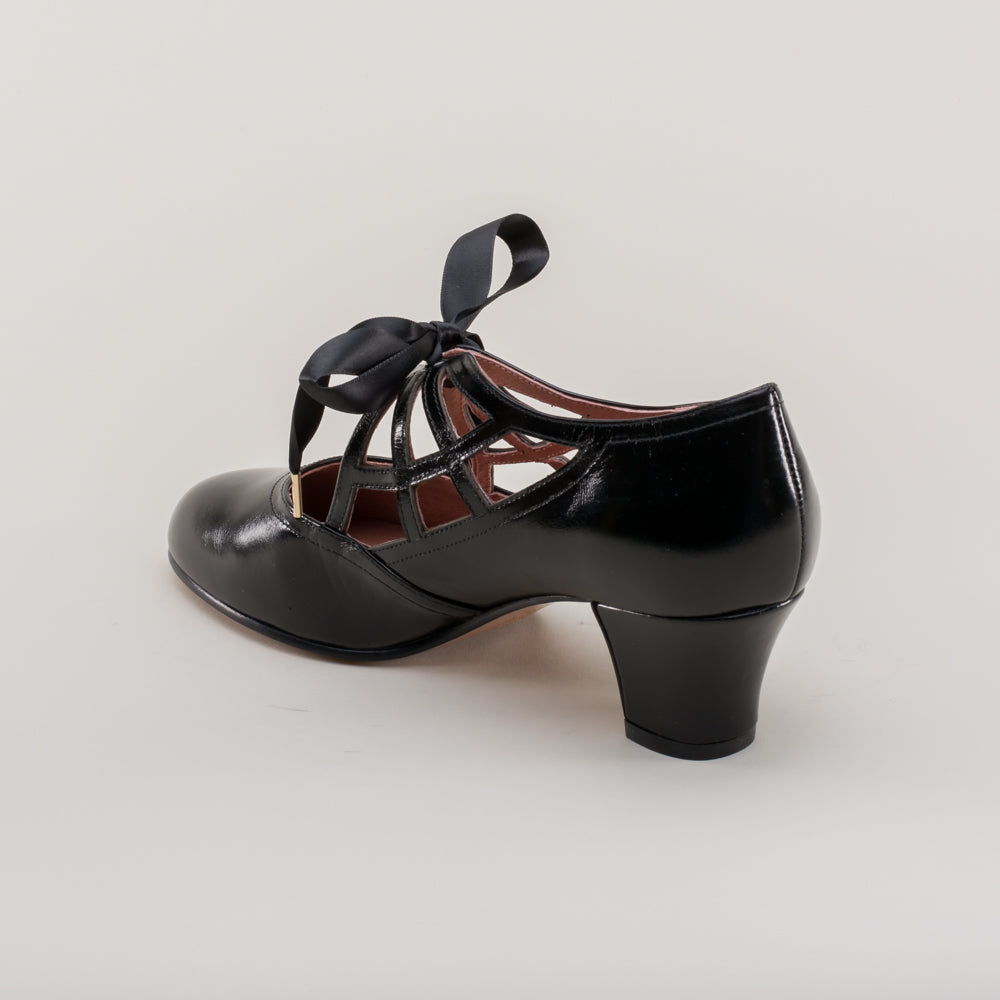 The original Parker Spiderweb Pumps were made in black patent leather, to which we have stayed faithful with our glossy, high-grade glacé calf. Wear Parkers all year around to add a little gothy interest to any outfit both historical and modern. They're perfect for any vintage attire along with Lolita, Steampunk, Dark Academia, and other aesthetic dress