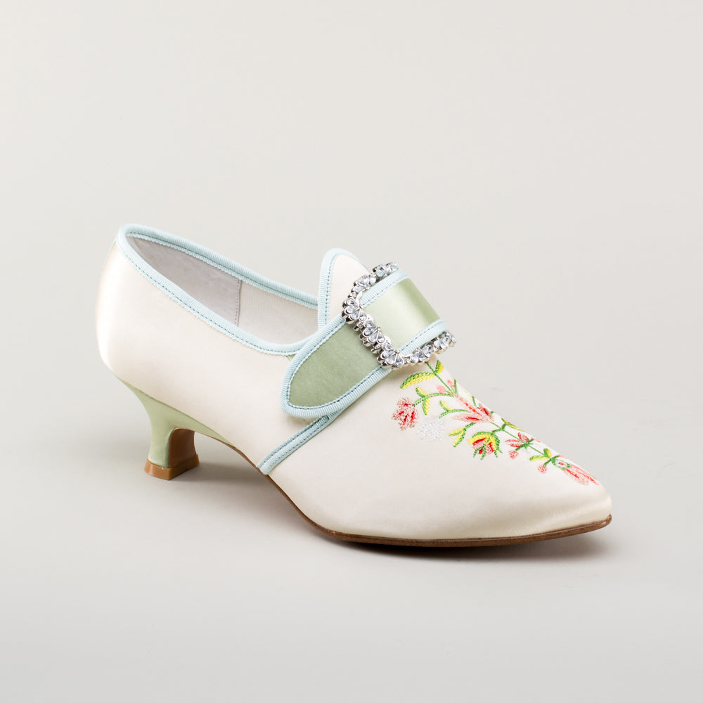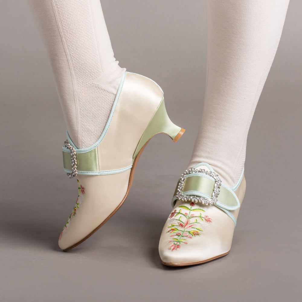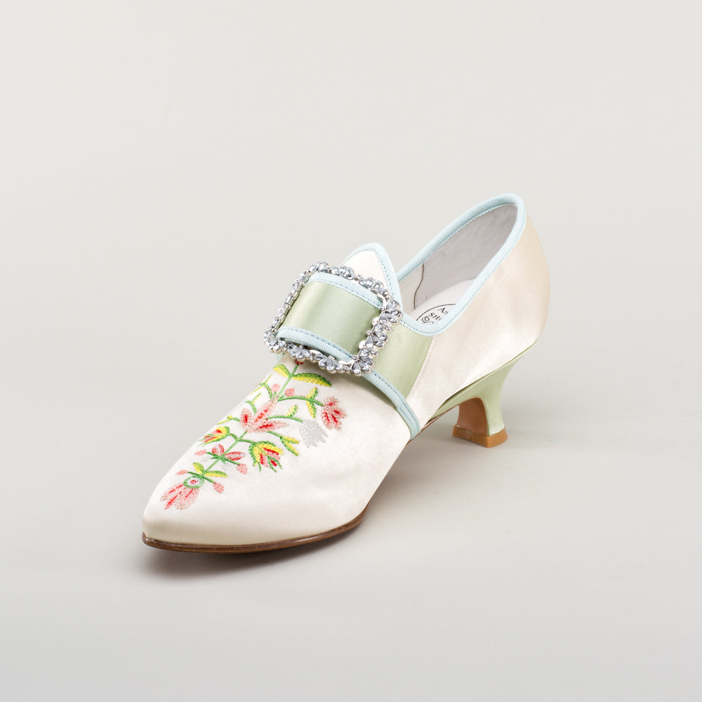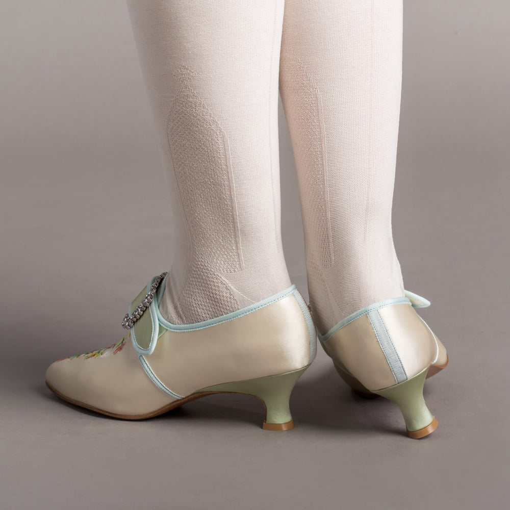 Primrose 18th Century Shoes (Ivory/Celadon Green)