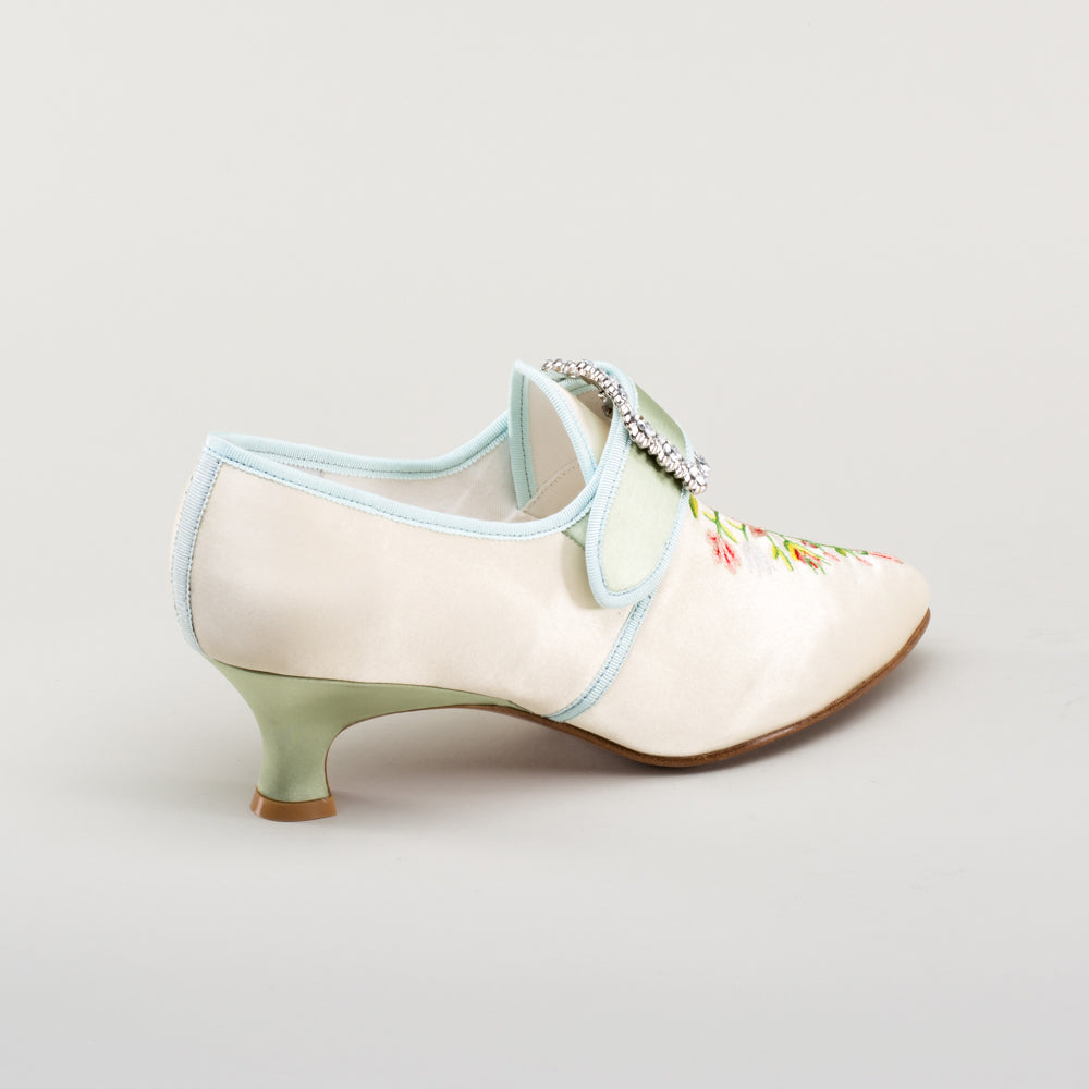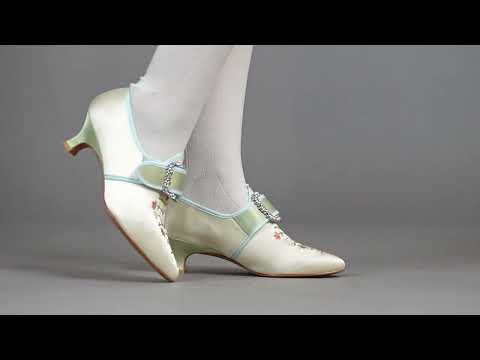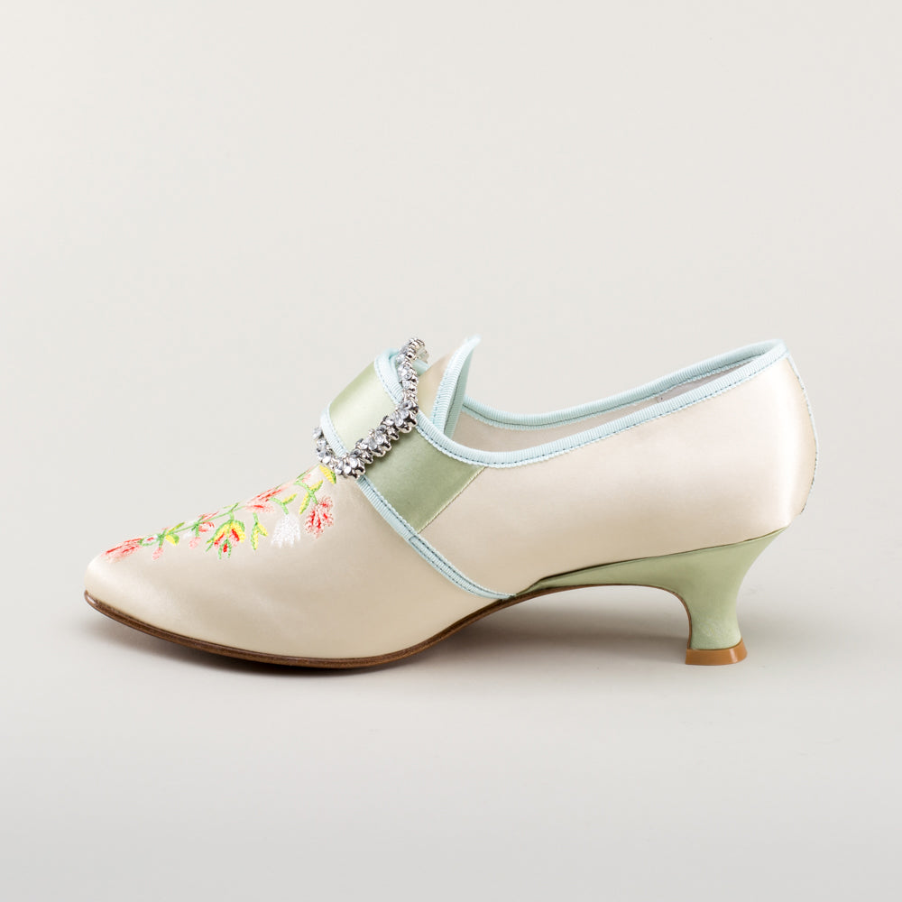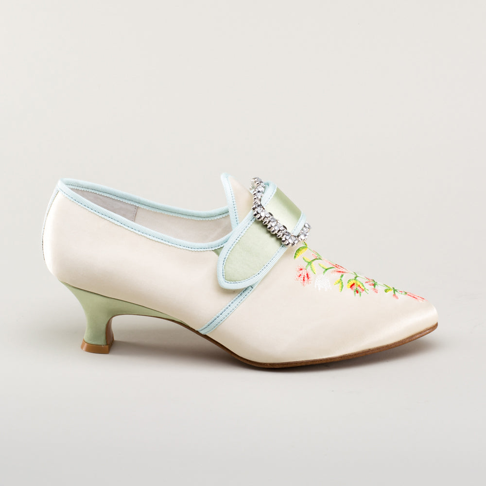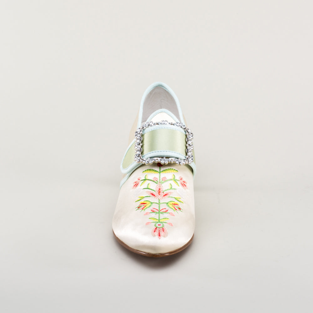 Primrose 18th Century Shoes (Ivory/Celadon Green)